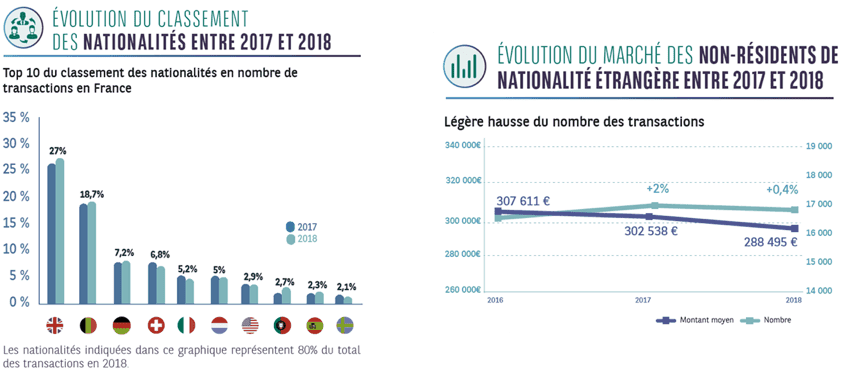 Le marché des acquéreurs étrangers, résidents et non-résidents, a continué sa progression en 2018 : +6% (65.0000 acquéreurs au total), avec une augmentation plus sensible sur les résidents, de l’ordre de 8%.