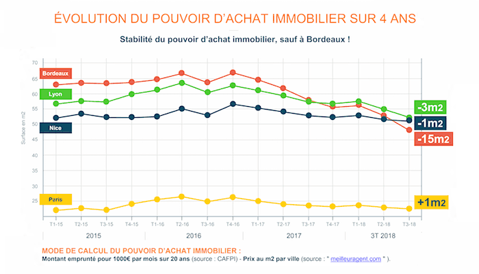 En revanche, ils ont perdu 1 m² à Nice, 3 m² à Lyon, Toulouse ou Rennes, 5 m² à Strasbourg. Deux villes font exception : Bordeaux où la perte atteint 15 m² et Marseille qui gagne 20 m² sur cette période.